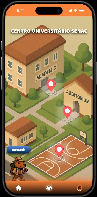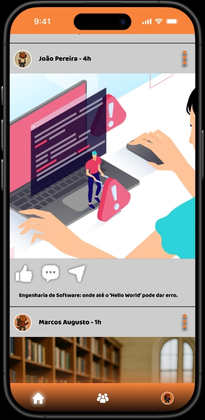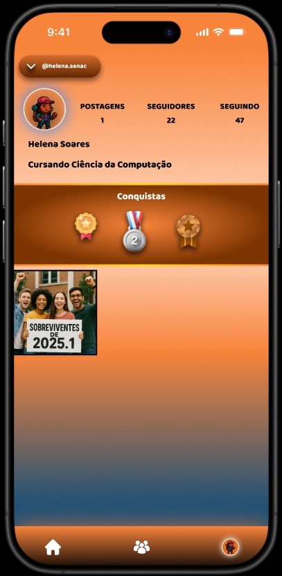 Protótipo de rede social para alunos do Senac desenvolvido em equipe com Figma.